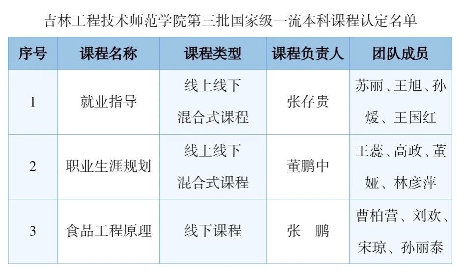 8月21日,教育部发布了《关于第三批国家级一流本科课程认定结果的公示》,我校获批3门国家级一流本科课程。其中,线上线下混合式课程2门,分别是张存贵教授的《就业指导》和董鹏中教授的《职业生涯规划》;线下课程1门,为张鹏教授的《食品工程原理》。这是我校课程建设取得的标志性成果,实现了我校国家级一流本科课程零的突破。