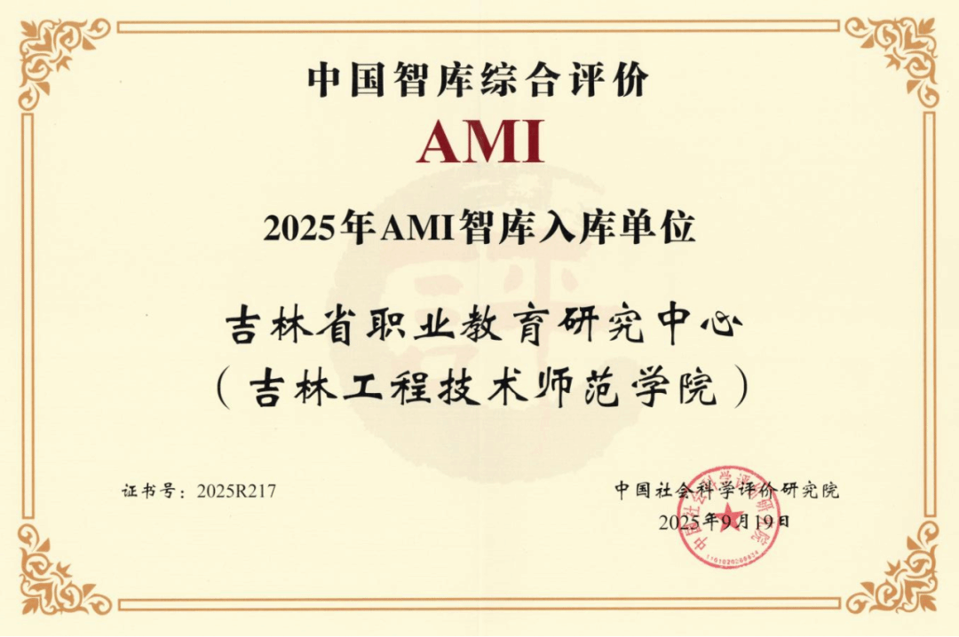 近日,由中国社会科学评价研究院主办、中国社会科学评价研究院机构与智库评价研究室承办的第八届中国智库建设与评价高峰论坛在北京召开,会上公布了中国智库综合评价研究项目(2025)评审结果。我校“吉林省职业教育研究中心”成功入选。