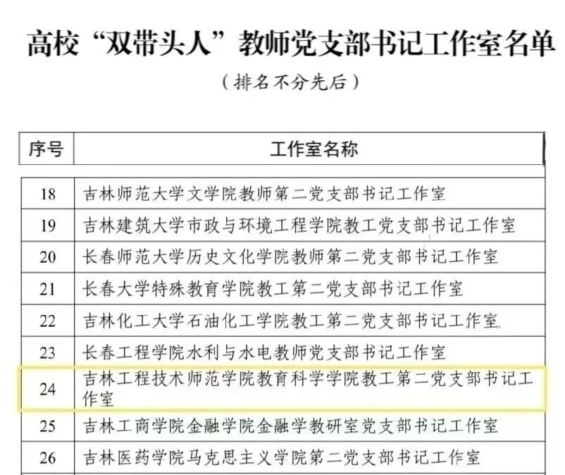 近日,吉林省委教育工委公布高校“双带头人”教师党支部书记工作室名单,我校教育科学学院教工第二党支部书记工作室成功入选。