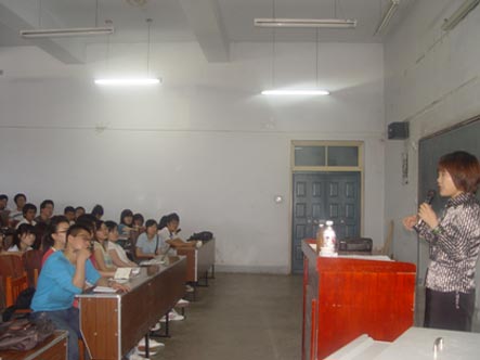 分别在主、分两个校区安排了心理健康讲座。分校区:于5月25日18:30,在实验楼五楼阶梯教室首先由本校陈卫副教授拉开了讲座的序幕,她的《传统文化与身心健康的关系》一题,从身心健康与人际交往联系;五种人伦关系相处的原则;和谐五伦关系先从自我做起三个方面,给同学们进行了阐释。陈老师与同学们一边讨论问题一边交流思想,寓教于乐,起到了很好的效果,学术氛围十分强烈。主校区:于5月26日10:00,在二教406阶梯教室由本校贾秀娟副教授带来的《让年轻的心灵洒满阳光》的讲座中,贾老师运用诙谐幽默的语言,结合发生在同学身边的鲜活实例,介绍了心理健康的概念,心理健康的标准,使同学们对健康心理有了进一步认识,在轻松的氛围中体会到健康心理的快乐,讲座获得了很大的成功。