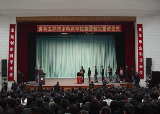4月26日,我校在报告厅举行了为青海玉树地震灾区捐款仪式,学校领导和师生员工参加了捐款活动。