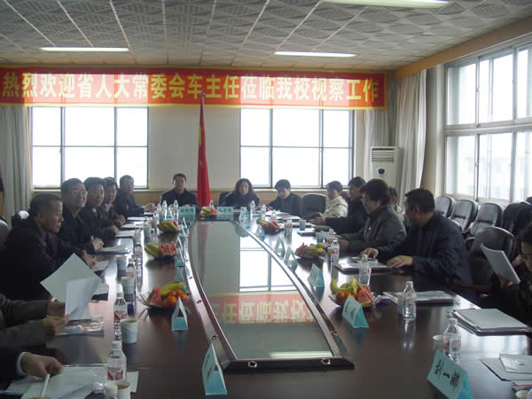 学校在图书馆楼第一会议室举行了简短而热烈的欢迎仪式,学院领导陈波升、白志敏、张云志、苏春辉、刘君义、刘琦参加了欢迎会。学院党委书记陈波升同志致欢迎辞,他代表学校对车副主任一行的到来表示热烈欢迎,对车副主任一行多年来对我校的关心表示衷心感谢。陈书记还向车副主任一行介绍了学校建设情况以及第五次党代会确定的学校未来发展战略构想。