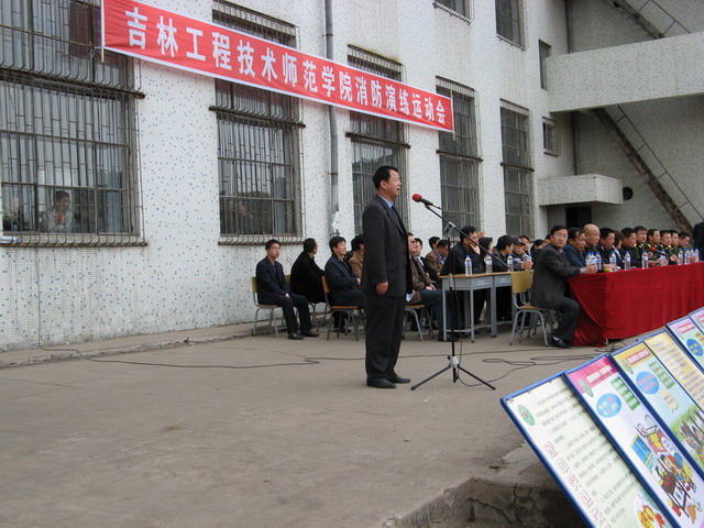 在运动会开幕式上,刘贵富副院长作了重要讲话,他代表学校党委、行政和安全防火委员会对参加此次运动会的全体运动员和工作人员致以亲切的问候,对多年来给予我校防火工作以大力支持的宽城区消防大队的全体官兵表示衷心的感谢。刘副院长希望广大师生员工要高度重视消防安全工作,把构建和谐校园落实到抓好防火安全的实际工作中来,进一步增强防火安全意识,提高灭火自救能力,为建设一个平安和谐的校园环境做出贡献。宽城区消防大队政委张正金也发表了讲话,他表示将一如既往地对我校的安全防火工作提供支持。