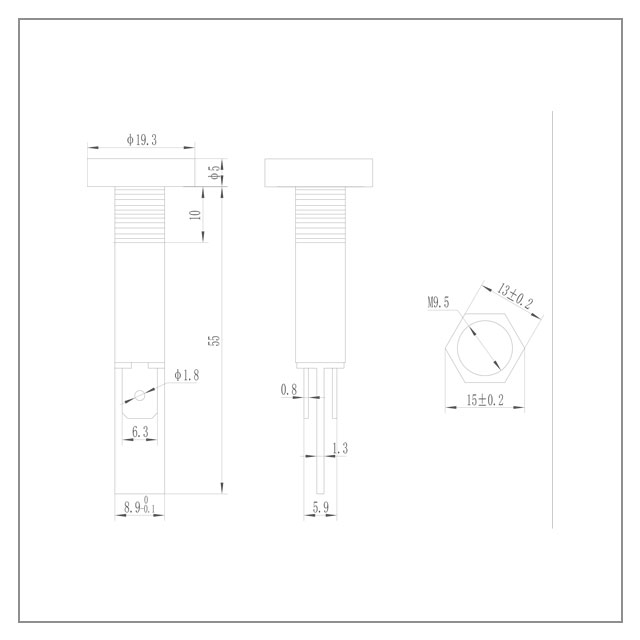 技术参数: ◆安装尺寸:Φ10mm;CE ◆Neon : 110(130)V; 230(250)V; 400V ; ( T100); ◆LED:2V; 6V; 12(14)V 24(28)V; 36V; 48V; 110V; 230V ; (T85)