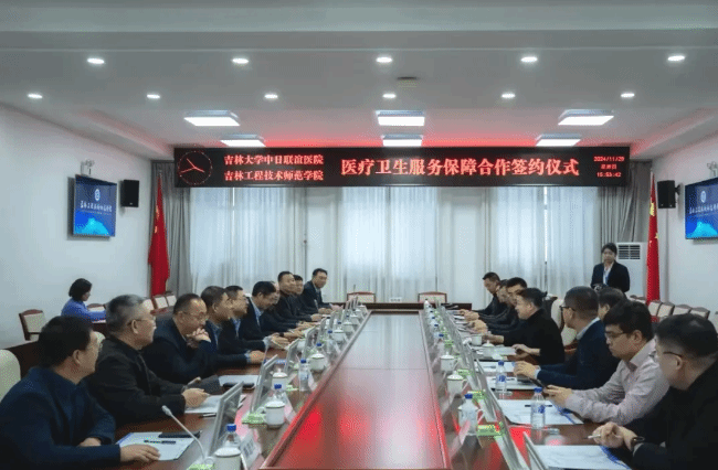 11月28日,学校与吉林大学中日联谊医院医疗卫生服务保障合作协议签约仪式在办公楼410会议室举行。吉林大学中日联谊医院党委书记杜建时、副院长顾锐、党委副书记兼副院长李旭东,学校党委书记刘剑桥、副校长张新华、党委常委于彦民、程宇出席仪式。签约仪式由张新华主持。刘剑桥在致辞中向吉林大学中日联谊医院介绍了学校基本情况,同时感谢长期以来,医院为我校教职工体检提供的大力支持和良好的就医体验。刘剑桥指出,吉大三院与学校医疗卫生服务保障合作协议的签署是医、...