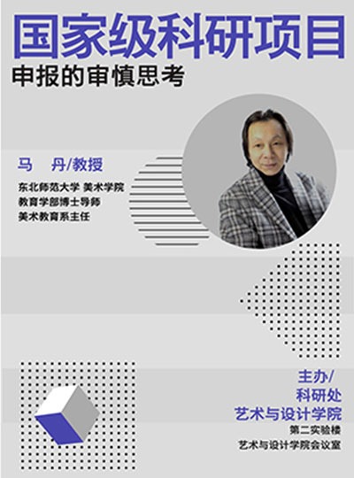 主讲人:马丹,男,东北师大美术学院教授时间、地点:2023年4月7日,艺术与设计学院会议室主办单位:艺术与设计学院、科研处讲座内容:1.[选题依据]国内外相关研究的学术史梳理及研究动态;相对于已有研究的独到学术价值和应用价值等;2.[研究内容]研究对象、总体框架、重点难点、主要目标等;3.[思路方法]研究的基本思路、具体研究方法、研究计划及其可行性等;4.[创新之处]在学术思想、学术观点、研究方法等方面的特色和创新;5.[...